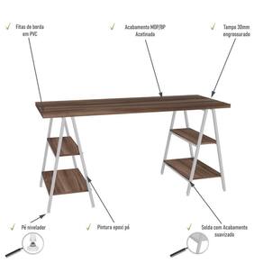 Mesa Kuadra Cavalete 150x60x75cm Nogal / Nogal / Sobre o ProdutoMesa Kuadra Cavalete 150X60X75cm Carvalho / Est.BrancaDescrição do Produto:A Mesa Cavalete KUMC6150 é um produto prático e versátil, que pode ser utilizado em diversos ambientes, como quarto e escritório, na sala, cozinha ou seu depó Linha Kuadra tem seu design com inspiração no estilo industrial, que remete muito a decoração usada nos Lofts das grandes metrópoles nos anos 60 e 70. Harmonizando o metal e os tons de madeira, foram projetados móveis versáteis e com estilo, que podem compor ambientes íveis cheios de personalidade, perfeitos para você decorar sua casa ou seu trabalho, tendo um resultado que caminha do estilo rústico ao Inclusos:1 MesaDimensões dos Produtos:Mesa Kuadra Cavalete 150X60X75cm Carvalho / 150 x 60 x 75 cmInformações Logísticas (Comp. X Prof. X Alt.) 155 x 64,5 x 7 cm - Peso: 26,784 KgPeso Total: 26,784 KgObservações:Não acompanha acessórios decorativos. Imagens meramente ilustrativas.Informações Técnicas / Características:- Cor do Produto: Carvalho / - Marca: Compace- Modelo: KUMC6150- Linha: Kuadra- Material: Mdp- Material da Estrutura / Pés: Aço- Acabamento: BP Acetinado- Escala de Brilho: Fosco- Fita de Borda: Pvc - Possui Gavetas: Não - Possui Prateleiras: 4- Peso Máximo por Prateleira: 5- Possui Pés: 2- Pés Niveladores: Sim - Acabamento Estrutura: Epóxi-Pó Texturizado- Formato: Retangular - Suporta Até (kg): 50 kg- Comprimento: 150cm- Profundidade: 60cm- Altura: 75cm - Peso Lí.: 25,79Kg- Recomendações de Uso, Manutenção e Limpeza: Para a limpeza, utilize flanela seca ou pano macio levemente umedecido em água. Utilize um pano seco em seguida. Evite com produtos químicos (solventes, thinner, acetona, etc) e não utilize nenhum tipo de esponja de aço.- Necessita de Montagem: Sim / Acompanha Manual de Montagem- Complexidade da Montagem: Média: pode ser montado por mais de uma pessoa e/ou necessite de maior conhecimento para montagem.- Garantia: 6 meses Material: Mdp | Acabamento: BP Acetinado | Escala de Brilho: Fosco | Fita de Borda: Pvc | Material da Estrutura: Aço | Acabamento da Estrutura: Epóxi-Pó Texturizado | Marca: Compace | Modelo: Mesa de escritório | Produto: Mesa | Cômodo indicado: Escritórios | Cor: Multicolorido | Tonalidade: Multicolorido | Profundidade: 60 | Altura: 75 | Comprimento: 150 | Fabricante: Compace | Coleção: Industrial | Requer Baterias: Não | Certificação Externa: | Componentes inclusos: Manual de montagem e kit acessórios | Preço de tabela: | Compace: do Modelo | 1: da Peça | KUMC6150: | Base da Mesa: | Duração da Garantia: | Dimensões do Produto (A x L x C), sem a caixa de embalagem: | Tipo de Mesa: | País de Origem: | Coleção de Antiguidade: | Montagem: | Móvel Dobrável: | Desing da Escrivaninha: | Recursos da Mesa: | Recursos da Escrivaninha: | Tipo de Garantia: | Produto personalizado: | de Assentos: | Tamanho Do Pacote: | Temas de Estampas: | Motivo de Isenção Anvisa: | Formato do Espelho: | Código Anvisa do Produto: | Shape: | Nr. do Lote do Produto: | Data de validade Anvisa: | Altura da Mesa: | Formato da Escrivaninha: | Qtd. de Produto no Lote: | Funcionalidades: | Estilo: | Quantidade: Cor: Nogal /