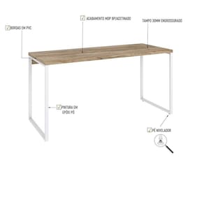 Sobre o ProdutoMesa Kuadra Office 150X60X75cm Amadeirado / Est.BrancaDescrição do Produto:A Mesa Diretor KUME6150 é um produto prático e versátil, que pode ser utilizado em diversos ambientes, como quarto e escritório, na sala, cozinha ou seu depó Linha Kuadra tem seu design com inspiração no estilo industrial, que remete muito a decoração usada nos Lofts das grandes metrópoles nos anos 60 e 70. Harmonizando o metal e os tons de madeira, foram projetados móveis versáteis e com estilo, que podem compor ambientes íveis cheios de personalidade, perfeitos para você decorar sua casa ou seu trabalho, tendo um resultado que caminha do estilo rústico ao Inclusos:1 MesaDimensões dos Produtos:Mesa Kuadra Office 150X60X75cm Amadeirado / 150 x 60 x 75 cmInformações Logísticas (Comp. X Prof. X Alt.) 155 x 64,5 x 7 cm - Peso: 17,534 KgPeso Total: 17,534 KgObservações:Não acompanha acessórios decorativos. Imagens meramente ilustrativas.Informações Técnicas / Características:- Cor do Produto: Amadeirado / - Marca: Compace- Modelo: KUME6150- Linha: Kuadra- Material: Mdp- Material da Estrutura / Pés: Aço- Acabamento: BP Acetinado- Escala de Brilho: Fosco- Fita de Borda: Pvc - Possui Gavetas: Não - Possui Pés: 2- Pés Niveladores: Sim - Acabamento Estrutura: Epóxi-Pó Texturizado- Formato: Retangular - Suporta Até (kg): 30 kg- Comprimento: 150cm- Profundidade: 60cm- Altura: 75cm - Peso Lí.: 16,54Kg- Recomendações de Uso, Manutenção e Limpeza: Para a limpeza, utilize flanela seca ou pano macio levemente umedecido em água. Utilize um pano seco em seguida. Evite com produtos químicos e não utilize nenhum tipo de esponja de aço.- Necessita de Montagem: Sim / Acompanha Manual de Montagem- Complexidade da Montagem: Média- Garantia: 6 meses