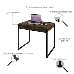 Mesa Kuadra Office 90X60X75cm C/02 Gavetas Amadeirado / Est.Preta: 90 x 60 x 75 cm