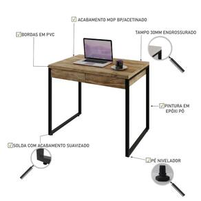 Mesa Kuadra Office 90X60X75cm C/02 Gavetas Amadeirado / Est.Preta: 90 x 60 x 75 cm