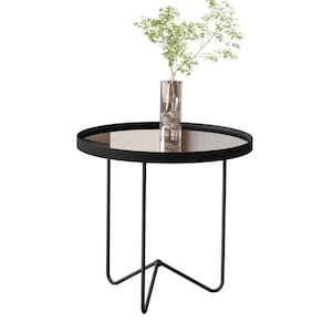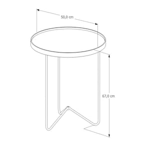 A mesa lateral Alamanda contém a borda em couro sintético e espelho 4mm, além dos pés em ferro.