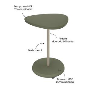 - Design encantador: Com a forma de um triângulo arredondado, ela adiciona sofisticação e suavidade ao ambiente. - Ideal para decorar: Perfeita para preencher aquele cantinho vazio da sala, ou servir como um prático apoio ao lado do sofá. - Pé de metal dourado brilhante: Toque de glamour que eleva a estética de toda a sala. - MDF 25 mm de qualidade: Garante durabilidade e resistência para suportar o uso diário. - Versatilidade: Combina facilmente com diferentes decorações e ambientes. - Detalhes que encantam: Acabamento refinado, com bordas arredondadas e cores modernas para atrair olhares e complementar a decoração.