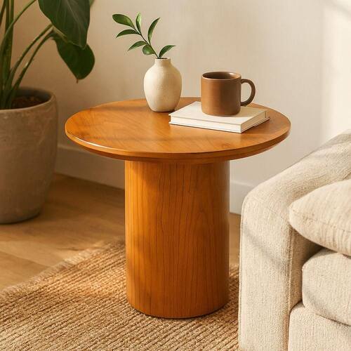 Mesa Lateral Aracaju Redonda Com Base Cilíndrica Sofisticação e Estilo em Cada Detalhe