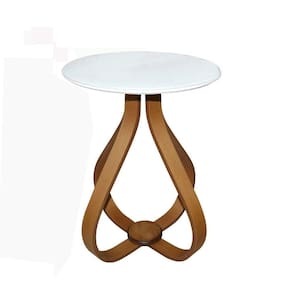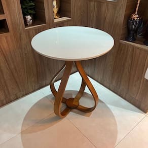 Mesa Lateral Bella 50x60cm pé Cebola Vidro Branco/Mel