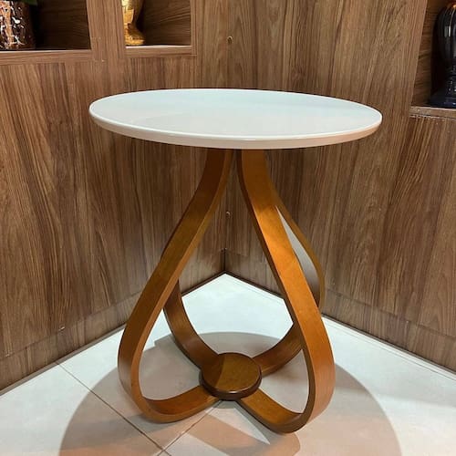 Mesa de Canto Bella pés foleado com Cinamomo, Tampo revestido com vidro, design moderno com pés cebola estilo clássico com um toque contemporâneo. Destaque para o design elegante e moderno. Para sua Sala de estar, escritório, área de leitura, entre outros. Perfeito como mesa de apoio ou para exibir objetos decorativos. Seguro e resistente produzido com materai prima de 1ª qualidade e madeira de reflorestamento