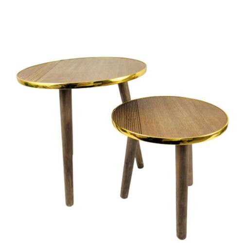 Mesa Lateral Centro Metal Madeira Dourado 40/30Cm 2 Peças