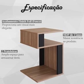 Mesa Lateral De Apoio 2 Prateleiras B74, uma peça moderna e compacta, ideal para deixar seu ambiente cheio de personalidade. Estrutura produzida em MDP de 15mm, contando com acabamento Finish Foil (Fosco), proporcionando maior durabilidade e resistência a peça. Composta por 2 Prateleiras com amplo espaço para armazenar itens. Suportando até 15 kg o tampo e 5kg cada prateleira. Perfeita para adicionar elegância e estilo ao seu ambiente. Este móvel chegará na sua casa em 1 volume.