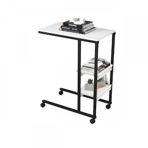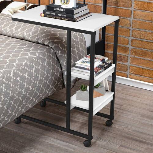 Mesa Lateral de Apoio Industrial com Rodízio Fit Yescasa Branco/Preto