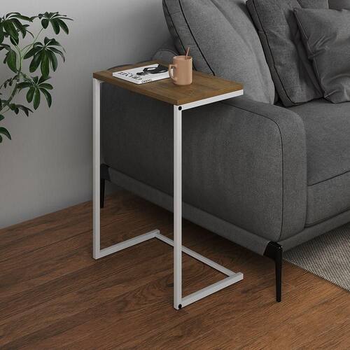 AS IMAGENS SÃO MERAMENTE ILUSTRATIVAS E PODEM SOFRER VARIAÇÕES DE COR E PEQUENOS DETALHES DE ACORDO COM O SEU MONITOR, ILUMINAÇÃO DO AMBIENTE E ATÉ MESMO A SUA PERCEPÇÃO Lateral de Apoio Industrial Sofà Charmme Ferro Branco e Tampo FreijÃ