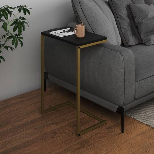 AS IMAGENS SÃO MERAMENTE ILUSTRATIVAS E PODEM SOFRER VARIAÇÕES DE COR E PEQUENOS DETALHES DE ACORDO COM O SEU MONITOR, ILUMINAÇÃO DO AMBIENTE E ATÉ MESMO A SUA PERCEPÇÃO Lateral de Apoio Industrial Sofà Charmme Ferro Dourado e Tampo Preto