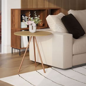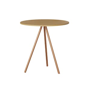 Mesa Lateral Decorativa Gabriela Base Cobre Tampo Redondo Canela - Casa Prime - Marrom