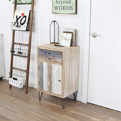 Mesa lateral de madeira Cheung em estilo painel em tons brilhantes, marrom