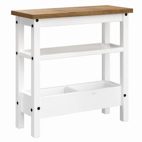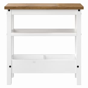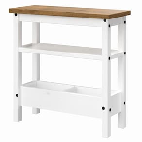 - Acabamento: Cera cor branco lavado com veios e nós aparentes. | Tampo: cera cor marrom antique.