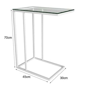 Mesa Lateral Encaixe Elena Vidro Branca - Cor: Branca Mesa Lateral Encaixe Elena Vidro BrancaPor que a Mesa Lateral Elena? Sua sala de estar precisa de peças modernas e estilosas! A Mesa Lateral Elena é ótima para deixar o seu lar com um toque arrojado, com aquele encanto que os móveis contemporâneos tanto causam em nós! Dona de um visual diferenciado, ela é confeccionada com materiais de qualidade, o que garante maior resistência e a torna ainda mais especial. Não acha que ficaria linda na lateral de seu sofá em sua casa? Aproveite! ;) Modelo: ElenaMaterial dos pés: Aço com Pintura BrancoMaterial do tampo: Vidro Altura do Produto (cm): 70cmComprimento do Produto (cm): 30Largura do Produto (cm): 45Formato: RetangularConteúdo da Embalagem: 1 Mesa de Centro Instruções/Cuidados: Estrutura: Limpar com produtos para Pintura e não utilizar esponja de Aço / Madeira: Limpar com produtos específicos para madeiras.Necessita Montagem?: NãoPeso do Produto (Kg): 3700Mesa Lateral Encaixe Elena Vidro Branca