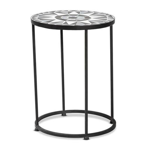 Melhore as capacidades do seu quintal com o design maravilhoso da mesa lateral externa Kaden. Feita na China, esta mesa é construída em metal sólido. A mesa redonda é decorada com detalhes em vidro colorido que se combinam para formar um padrão de mosaico visualmente deslumbrante. O Kaden chegará totalmente montado e apresentará um design aberto e organizado que permite que a luz flua naturalmente por toda a área. Uma peça de destaque espetacular para unir qualquer pátio ou deck, a mesa lateral externa Kaden certamente deixará uma boa impressão.