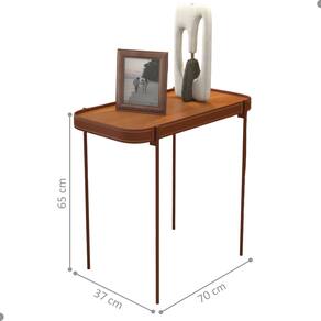 O grande diferencial deste modelo é o seu tamanho: com 70cm de largura, ela oferece muito mais espaço de apoio do que as mesas laterais comuns. É perfeita para ser usada ao lado do sofá, como um mini aparador no hall de entrada, ou até como cantinho do café.
