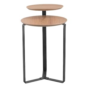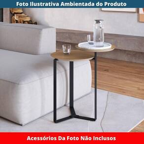 Mesa Lateral Industria Chanfrada Artesano 44 cm (Largura) 2 Tampos MDP Hanover e Pé em Aço Preto - Marrom