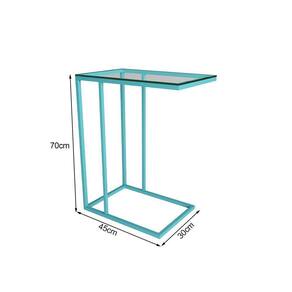 Mesa Lateral Industrial Elena De Vidro Base Ferro Azul Turquesa - Cor: Preto