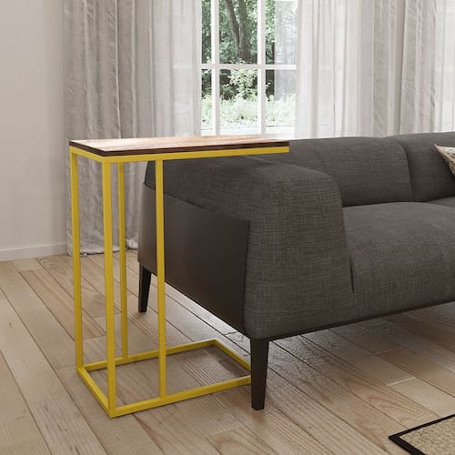 Mesa Lateral Industrial Elena Tampo Amendoa Base Ferro Amarelo Por que a Mesa Lateral Elena? Sua sala de estar precisa de peças modernas e estilosas! A Mesa Lateral Elena é ótima para deixar o seu lar com um toque arrojado, com aquele encanto que os móveis contemporâneos tanto causam em nós! Dona de um visual diferenciado, ela é confeccionada com materiais de qualidade, o que garante maior resistência e a torna ainda mais especial. Não acha que ficaria linda na lateral de seu sofá em sua casa? Aproveite! ;)