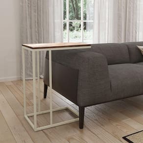 Mesa Lateral Industrial Elena Tampo Amendoa Base Ferro Off White - Cor: Preto