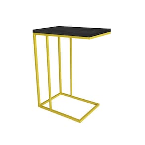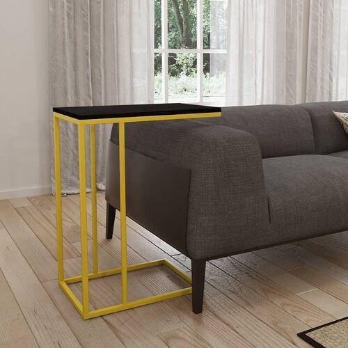 Mesa Lateral Industrial Elena Tampo Preto Base Ferro Amarelo - Cor: Preto