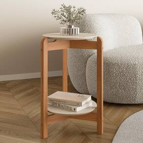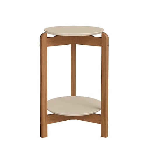 Mesa Lateral Lizz Redonda - Casa D A Mesa Lateral Lizz Redonda é uma combinação perfeita de moda e funcionalidade para qualquer ambiente. Com estrutura em MDF e acabamento em Print Wood, ela possui bordas com acabamento soft P.U, garantindo um toque sofisticado e maior durabilidade. Seu tampo redondo de 35mm oferece resistência e um design moderno, enquanto os pés em madeira proporcionam estabilidade e um charme natural. Ideal para complementar sua sala de estar, quarto ou escritório, essa mesa lateral agrega praticidade e estilo à decoração.