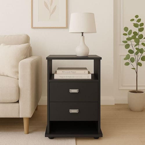 Mesa de Cabeceira com 2 Gavetas e Nicho Design Funcional e Compacto