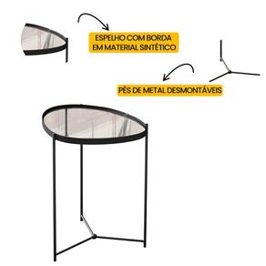 Seu tampo espelhado com borda delicada reflete sofisticação, enquanto a estrutura metálica garante leveza e durabilidade.