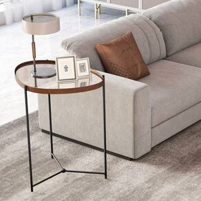 Mesa Lateral Organica Espelhada Alamanda JB Moveis Com design contemporaneo e formato organico, esta mesa lateral e a peca ideal para quem busca sofisticacao com personalidade. Seu tampo diferenciado foge das linhas tradicionais, trazendo leveza visual e um toque moderno a decoracao. O tampo combina MDF com espelho, criando um efeito elegante e refinado. O contorno em couro sintetico valoriza ainda mais o acabamento, adicionando charme e requinte aos detalhes. Ja os pes metalicos garantem estabilidade, resistencia e um visual atual que harmoniza facilmente com diversos estilos de ambiente. Perfeita para compor salas de estar, quartos ou halls, ela e ideal para apoiar objetos decorativos, luminarias, vasos ou itens de uso diario, suportando ate 5kg