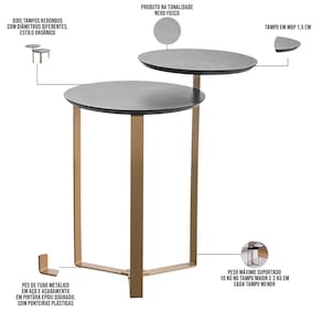 MDPTransforme a sua decoração com a Mesa Lateral 2 em 1 Dari, da Lyam Decor, uma verdadeira obra-prima que une estilo e funcionalidade. Composta por dois tampos redondos harmoniosamente conectados por uma base metálica, essa peça é um convite a um design moderno e versátil.