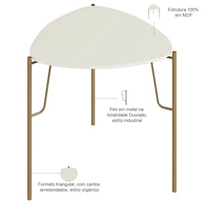 A Mesa Lateral Alta Alef, da Lyam Decor, reinventa o conceito de móveis para sala de estar e living com seu formato triangular e cantos arredondados, unindo o estilo orgânico ao industrial.