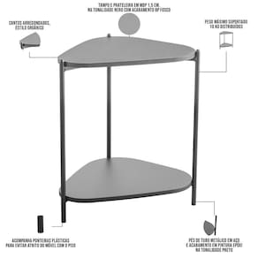 Tampo e prateleira em MDP 15mm, na tonalidade Nero com acabamento BP fosco.
