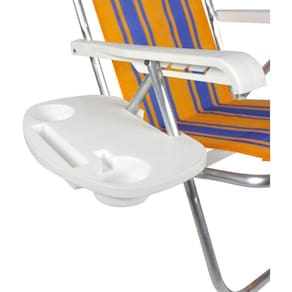 Mesa Lateral Portátil Para Cadeira De Praia Porta Copo Branca A Mesinha Lateral para Cadeira de Praia é o acessório que chegou para facilitar seus momentos de lazer. Super prática, a mesinha conta com 3 compartimentos para guardar chaves, celular, protetor solar, óculos de sol, latinhas de bebida, etc. Extremamente versátil, a mesinha pode ser usada na praia, piscina, parque, camping, jardim ou área externa da sua casa.Produzida em polipropileno, a Mesinha Lateral para Cadeira de Praia é resistente e fácil de transportar. Seu modelo é compatível com as Cadeiras de Praia Bel: Alta, Reclinável 4 Posições, Reclinável 8 Posições, Lazy, Sunny e Prosa.Dados TécnicosEstrutura em PolipropilenoVersátil e resistenteFácil de transportarCompatível com as cadeiras: Alta, Reclinável 4 Posições, Reclinável 8 Posições, Lazy, Sunny e ProsaMedidas: 37cm x 23cm