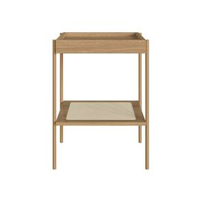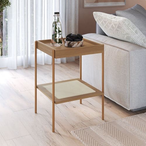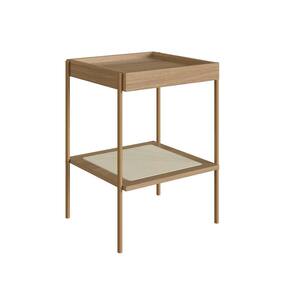 Mesa Lateral Quadrada com Prateleira 43cm Palhinha Pé Metal Oslo Hanover/Dourado - Bege
