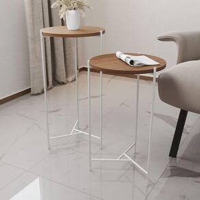 Mesa Lateral Redonda Áquila Branca E Tampo ImbuiaJogo de mesa lateral, design sofisticado e moderno, o estilo permite que você tenha total liberdade para deixar seu ambiente ainda mais elegante, tem um visual único e traz junto com elas variações de cores dando uma combinação perfeita para seu ambiente.Tipo: Mesa LateralModelo: ÁquilaCor: Branco Tampo: Imbuia Medidas:Mesa 01Altura: 55cmDiâmetro: 35cmMesa 02Altura: 55cmDiâmetro: 35cmATENÇÃOIMAGENS MERAMENTE ILUSTRATIVAS REALIZADO EDIÇÃO, PODENDO HAVER UMA PEQUENA VARIAÇÃO DE COR DEPENDENDO DE CADA TELA OU MONITOR. Mesa Lateral Redonda Ãquila Branca e Tampo Imbuia