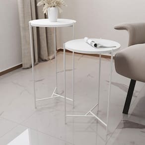 Mesa Lateral Redonda Áquila Branca Tampo BrancoJogo de mesa lateral, design sofisticado e moderno, o estilo permite que você tenha total liberdade para deixar seu ambiente ainda mais elegante, tem um visual único e traz junto com elas variações de cores dando uma combinação perfeita para seu ambiente.Tipo: Mesa LateralModelo: ÁquilaCor: Branco Tampo: Branco Medidas:Mesa 01Altura: 55cmDiâmetro: 35cmMesa 02Altura: 55cmDiâmetro: 35cmATENÇÃOIMAGENS MERAMENTE ILUSTRATIVAS REALIZADO EDIÇÃO, PODENDO HAVER UMA PEQUENA VARIAÇÃO DE COR DEPENDENDO DE CADA TELA OU MONITOR. Mesa Lateral Redonda Ãquila Branca Tampo Branco