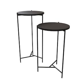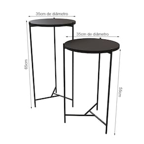 Mesa Lateral Redonda Áquila Preta Tampo Preto Jogo de mesa lateral, design sofisticado e moderno, o estilo permite que você tenha total liberdade para deixar seu ambiente ainda mais elegante, tem um visual único e traz junto com elas variações de cores dando uma combinação perfeita para seu ambiente.