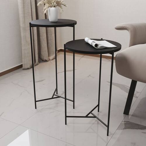Mesa Lateral Redonda Áquila Preta Tampo Preto Jogo de mesa lateral, design sofisticado e moderno, o estilo permite que você tenha total liberdade para deixar seu ambiente ainda mais elegante, tem um visual único e traz junto com elas variações de cores dando uma combinação perfeita para seu ambiente.