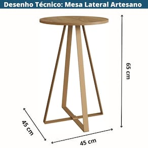 Mesa Lateral Redonda Artesano 65 Cm (altura) Em Mdp Bp Estrutura Metálica Em Aço Dourado A Mesa Lateral Complemento da Artesano une beleza e funcionalidade, os ambientes da sua casa serão muito mais completos com elas. O acabamento manual em múltiplas etapas revela toda a beleza da madeira. Aproveite o melhor do design contemporâneo, aliado à atemporalidade de peças que combinam madeira maciça com estruturas em aço, deixando seu ambiente muito mais estiloso e harmônico. Fundada em 1 de julho de 1982, sediada em Bento Gonçalves, na Serra Gaúcha, a Artesano é uma empresa que oferece aos clientes móveis de qualidade, design moderno e comprometimento com as entregas. Mais que um negócio, a Artesano é uma família que contribui para o bem estar social, respeitando o indivíduo, a sociedade e o meio ambiente. É uma empresa com raízes em seu conhecimento adquirido no passado, mas com olhos no futuro, no crescimento constante, no aperfeiçoamento, lutando sempre pela satisfação da pessoa mais importante de todo o processo: VOCÊ! Além da grande abrangência Nacional, a Artesano exporta suas linhas de produtos para os cinco Continentes, móveis com design exclusivos e materiais de primeira linha se unem para transformar a Artesano em uma marca presente nos mais lindos ambientes. Artesano, a arte de criar móveis! Cor: Dourado | Materiais: MDP, Aço | Material da estrutura: Aço | Tonalidade: Dourado | Linha: Artesano | Estilo de Decoração: Industrial | Marca: Artesano | Peso Suportado (kg): 10 | Área de Uso: Interna | Garantia (tempo): 6 meses | Garantia (descritivo): Garantia contra defeitos de fabricação de 06 meses. Consulte as nossas políticas. | Peso (kg): 5.6 | Largura (cm): 45 | Profundidade (cm): 45 | Altura (cm): 65 | Entregue Montado?: Não | Possui Manual de Montagem?: Acompanha o Produto | Origem do Produto?: Nacional | Conservação e Manutenção: Limpeza com pano úmido em solução de água e detergente neutro. Secar em seguida. | Acabamento: Fosco | Formato: Redondo | Atributos: Decorativo, Versátil, Sofisticado | Produto: Mesa Lateral Redonda Artesano 65 cm (altura) em MDP BP estrutura Metálica em Aço Dourado | Tipo de Base: Central