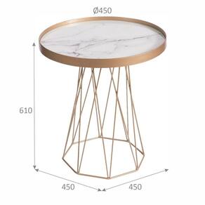 A mesa trama remete a arte de entrelaçar fios de metal entre si de forma delicada e artesanal. O acabamento interno do tampo em vidro marmorizado carrara traz leveza e sofisticação a peça. A base metálica traz uma proposta moderna e sofisticada para o ambiente, podendo ser utilizada em conjunto ou individualmente. Tampo bandeja com argola na cor dourada Ø450. Estrutura metálica na cor dourada H610 Acabamento da Base: Pintura Acabamento do Tampo: Vidro Ambiente Principal: Sala de Estar Complexidade da Montagem: Baixa: pode ser montado por uma pessoa sozinha Cor: Dourado Cor do Produto: Dourado Dobrável: Não Escala de Brilho: Fosco Espessura do Tampo: 3 mm Extensível: Não Itens Inclusos: TAMPO E BASE Linha ou Coleção: TRAMA Manual de Montagem e Instalação: https://cdn2.madeiramadeira.com.br/atributo/portal/2041184-5749-17181321643508.pdf Material da Base: Metal Material do Tampo: Vidro/MDF Material Principal: MDF Medida do Tampo (L x C x E): 40 Necessita Montagem: Sim Origem do Produto: Nacional Peso: 5 kg Possui Base: Sim Possui Espelho: Não Possui Possui Gavetas: Não Possui Portas: Não Possui Prateleiras: Não Possui Rodízio: Não Possui Suporte Giratório: NAO Recomendações de Uso, Manutenção e Limpeza: PANO SECO. NÃO USAR PRODUTOS ABRASIVOS Sistema de Montagem: FIXAR OS PARAFUSOS ENTRE BASE E TAMPO Suporta Até (kg): 5 kg