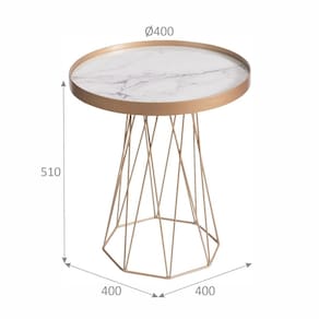 A mesa trama remete a arte de entrelaçar fios de metal entre si de forma delicada e artesanal. O acabamento interno do tampo em vidro marmorizado carrara traz leveza e sofisticação a peça. A base metálica traz uma proposta moderna e sofisticada para o ambiente, podendo ser utilizada em conjunto ou individualmente. Tampo bandeja com argola na cor dourada Ø400. Estrutura metálica na cor dourada H51 Acabamento da Base: Pintura Acabamento do Tampo: Vidro Ambiente Principal: Sala de Estar Complexidade da Montagem: Baixa: pode ser montado por uma pessoa sozinha Cor: Dourado Cor do Produto: Dourado Dobrável: Não Escala de Brilho: Fosco Espessura do Tampo: 3 mm Extensível: Não Itens Inclusos: TAMPO E BASE Linha ou Coleção: TRAMA Manual de Montagem e Instalação: https://cdn2.madeiramadeira.com.br/atributo/portal/2041184-5749-17181321643508.pdf Material da Base: Metal Material do Tampo: Vidro/MDF Material Principal: MDF Medida do Tampo (L x C x E): 40 Necessita Montagem: Sim Origem do Produto: Nacional Peso: 10 kg Possui Base: Sim Possui Espelho: Não Possui Possui Gavetas: Não Possui Portas: Não Possui Prateleiras: Não Possui Rodízio: Não Possui Suporte Giratório: NAO Recomendações de Uso, Manutenção e Limpeza: PANO SECO. NÃO USAR PRODUTOS ABRASIVOS Sistema de Montagem: FIXAR OS PARAFUSOS ENTRE BASE E TAMPO Suporta Até (kg): 5 kg
