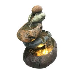 Fonte de mesa de pedra multicolorida com luzes LED brancas quentes