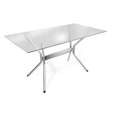 As mesas da linha crome Kappesberg possuem estrutura metálica e acabamento polido. As estruturas cromadas são feitas através de um processo 100% autorizado, enquanto que as estruturas pintadas, utilizam tinta epóxi em sua composição, tornando o produto mais resistente e durável.A mesa Loire Kappesberg conta com um design diferenciado em sua estrutura, além da cor níquel, que garante elegância ao produto. O tampo de vidro com espessura de 8mm dá um charme a mais na composição e deixa seu espaço ainda mais moderno e prático.