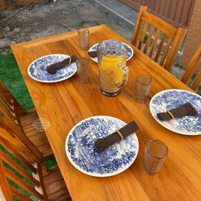 Madeira de DemoliçãoA Mesa Rústica em Madeira De Demolição 140x70cm com 04 Cadeiras Ana Hickmann da Sudeste Rústico é para você que procura uma peça tradicional e confortável. Altamente resistente e durável, a mesa possui 1,40 m de comprimento e 0,70 cm de largura, acompanha 4 cadeiras com encosto inclinado, gerando ainda mais conforto. Produzida em madeira de demolição. É perfeita para reunir a familia em áreas gourmet, áreas de churrasco, cozinhas e salas de jantares . Deixe seu ambiente ainda mais bonito e sofisticado com A Mesa e as cadeiras em Madeira de Demolição da Sudeste Rústico.