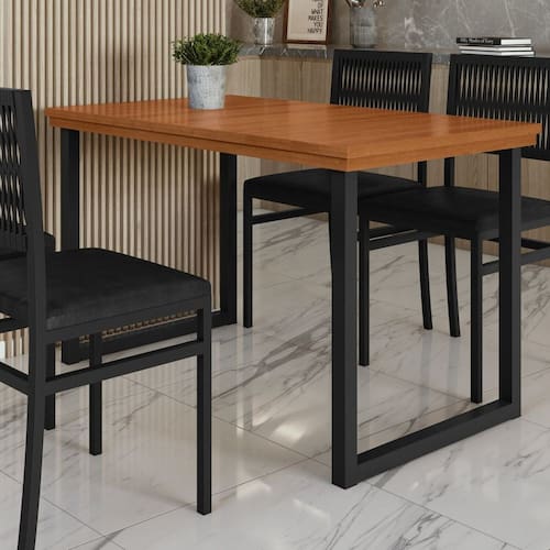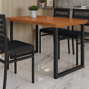 Esta mesa combina um estilo contemporâneo com toques rústicos, destacando seus pés de aço preto que criam um contraste elegante com o tampo de madeira maciça. A superfície de madeira exibe veios únicos e um acabamento refinado, proporcionando um visual natural e sofisticado. Os pés em aço garantem firmeza e resistência, enquanto a madeira traz uma sensação acolhedora ao espaço. Perfeita para salas de jantar, é uma peça que alia praticidade com um design marcante. Acabamento: Pintura Texturizada UV Ambiente Principal: Sala de Jantar codigo_ean: 7900288055644 Complexidade da Montagem: Baixa: pode ser montado por uma pessoa sozinha Cor: Preto / Marrom Cor do Produto: Preto / Marrom Escala de Brilho: Semi-Fosco Extensível: Não Itens Inclusos: 1 Mesa, 1 Manual de Montagem e 1 Kit ferragem. Manual de Montagem e Instalação: https://product-hub-prd.madeiramadeira.com.br/975580/documents/e79ca853-4cd9-4b27-9e38-bc6b3b473dec2648053493817377286861697.pdf Marca: PAONANDA DECOR Material da Base: Aço Material do Tampo: Madeira Maciça Material Principal: Madeira Maciça Necessita Montagem: Sim Origem do Produto: Nacional Peso: 22,5 kg Possui Rodízio: Não Possui Vidro: Não Recomendações de Uso, Manutenção e Limpeza: Um pano seco e um pano levemente umedecido, evitar alvejantes e produtos de limpeza. Sistema de Montagem: PARAFUSOS Suporta Até (kg): 15 kg Tipo de Madeira Maciça: Eucalipto Tipo de Madeira Maciça do Tampo: Eucalipto Marca: PAONANDA DECOR