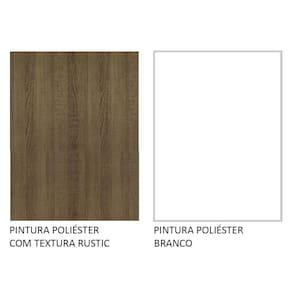O acabamento da base é no padrão amadeirado Rustic, combinado com o tampo em pintura branca. Ambos feitos em Pintura Poliéster de alta resistência, processo que aumenta a qualidade e durabilidade do móvel, protegendo contra os efeitos da água e do calor.