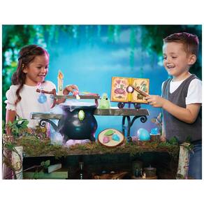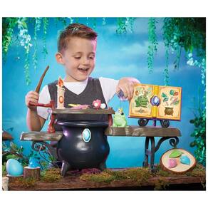 ESCOLHA SUA POÇÃO Percorra o livro de feitiços fácil de seguir para selecionar a poção que você deseja fazer MISTURA INGREDIENTES ENQUANTADOS Meça o e misture os ingredientes encantados no caldeirão ASSISTA À MÁGICA Retire uma amostra da sua poção do caldeirão e despeje a sobre o sapo para ver a mágica 6 RECEITAS DE POÇÃO O sapo se apaixonará, cantará uma música boba, fará barulhos de animais patetas, mudará de cor, rirá incontrolavelmente ou imitará sua própria voz Com mais de 20 reações, é um mistério mágico TANTO O QUE FAZER Com luzes e sons mágicos de 50 , há muito o que ver e fazer