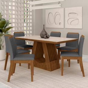Detalhes Técnicos das Cadeiras -Assento e Encosto Tapeçados, Estofados e Fixos -Peso Suportado da Cadeira:90KG -Facilidade da Montagem:Média -Tonalidade da Cadeira:Freijó/Camurça Cinza -Espuma do Encosto:D14 -Espuma do Assento:D16 -Tipo de Pintura:UV Texturizada -Material da Estrutura:MDF 25/18mm -Medida da Cadeira:A:95CMxL:44CMxP:50CM