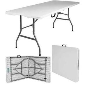 Tampo na cor Branca Ferragem na Cor CInza Comprimento 1,80 m Altura 74cm Largura 74cm Peso Liq 10,30 Peso Bruto 11,3 Tampo de Polipropileno de alta densidade Pés e suporte inferiores de ferro com pintura especial Embalagem fechada 74,5 x 7,3 x 93cm Com trava nos pés para não fechar enquanto aberta. Basta abrir e travar. Marca: Vghome Ean: 0672713462439