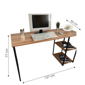 Descubra a perfeição da funcionalidade e do design com nossa mesa de escritório multiuso. Projetada para se adaptar a diversas necessidades e ambientes, esta mesa é ideal tanto para o trabalho quanto para o estudo em casa. Acabamento da Base: Pintura Acabamento do Tampo: BP Ambiente Principal: Escritório Complexidade da Montagem: Baixa: pode ser montado por uma pessoa sozinha Cor do Produto: Nogal/Preto Dobrável: Não Escala de Brilho: Fosco Espessura do Tampo: 15 mm Extensível: Não Itens Inclusos: 01 Mesa com a base, Kit Ferragens, Manual de Montagem Material da Base: Aço Material da Prateleira: MDp Material do Tampo: MDP Material Principal: MDP Medida do Tampo (L x C x E): 1,37x0,50x0,77 Necessita Montagem: Sim Peso: 16,5 kg Peso Máximo por Prateleira: 10 kg Possui Base: Sim Possui Gavetas: Não Possui Portas: Não Possui Prateleiras: 02 Possui Rodízio: Não Recomendações de Uso, Manutenção e Limpeza: Limpar com pano levemente umedecido com água Sistema de Montagem: Utilizar as ferragens e seguir o manual de instruções Suporta Até (kg): 30 kg